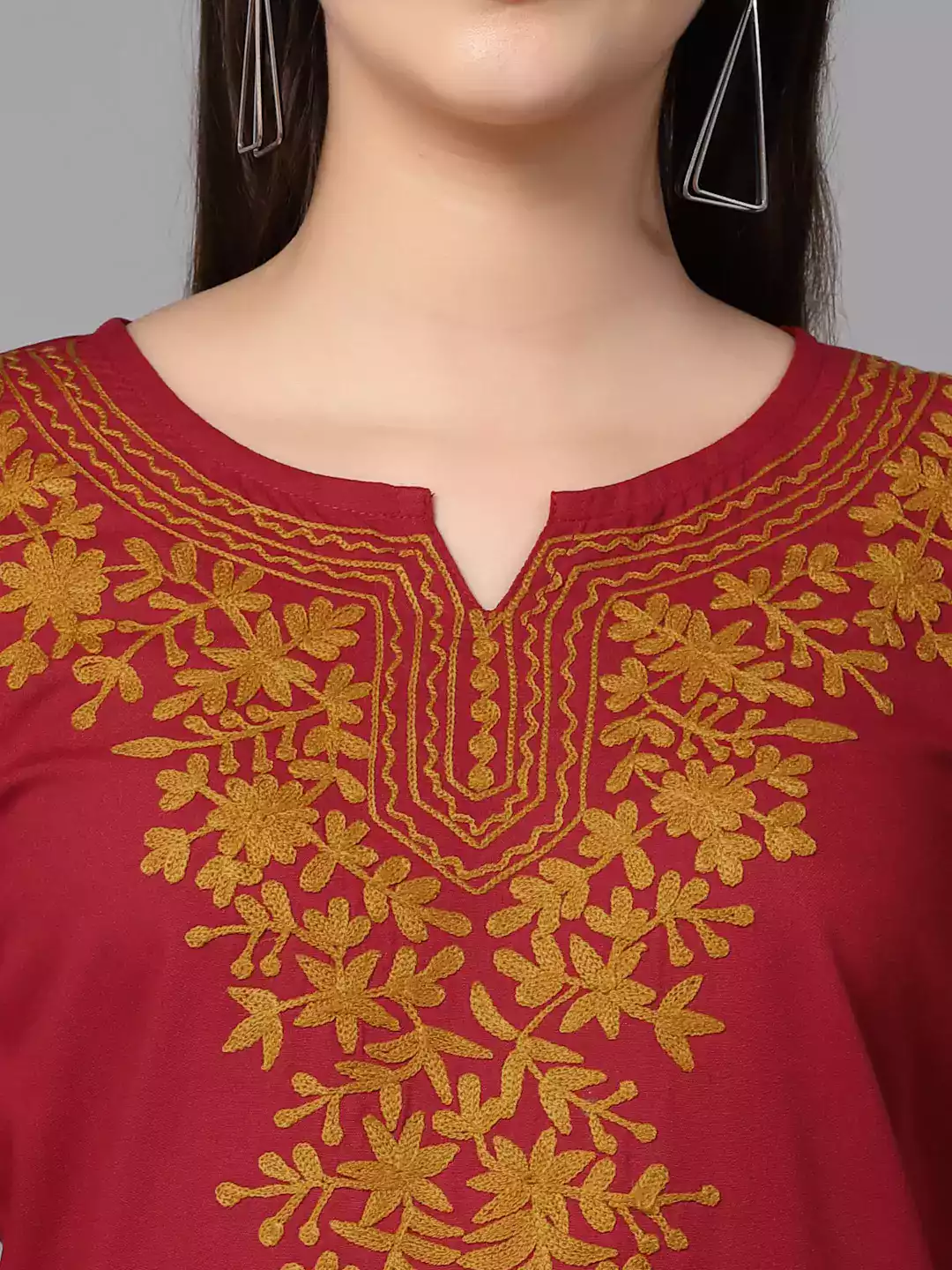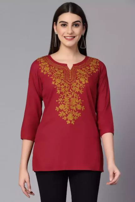 Red Kashmiri Embroidered Short Kurti
