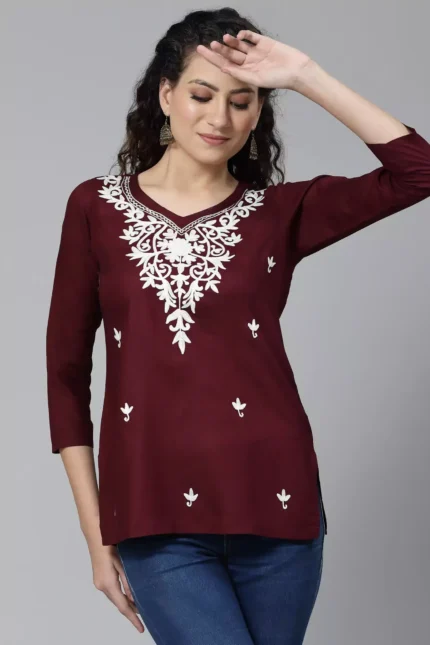Red Chikankari Short Kurti