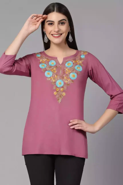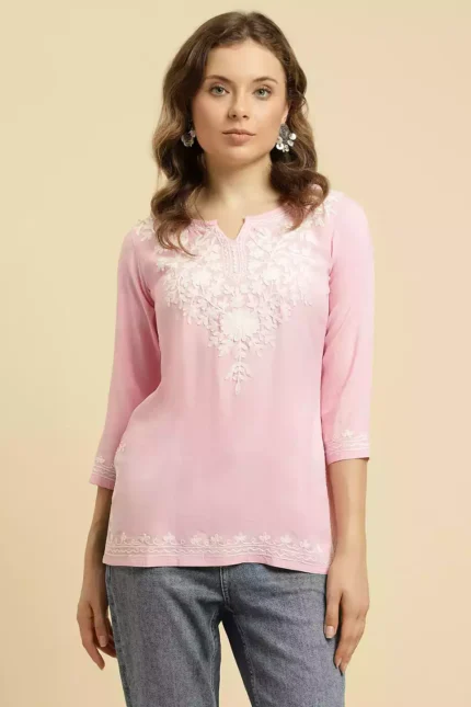 Light Pink Kashmiri Short Kurti