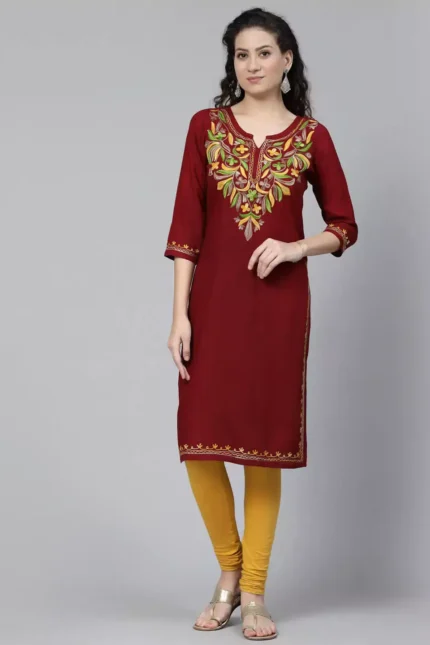 Wine Chikankari Kurti