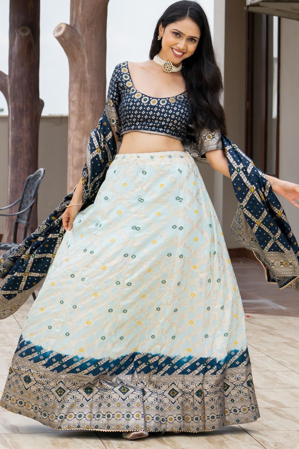 Blue Silk Blend Lehenga Set