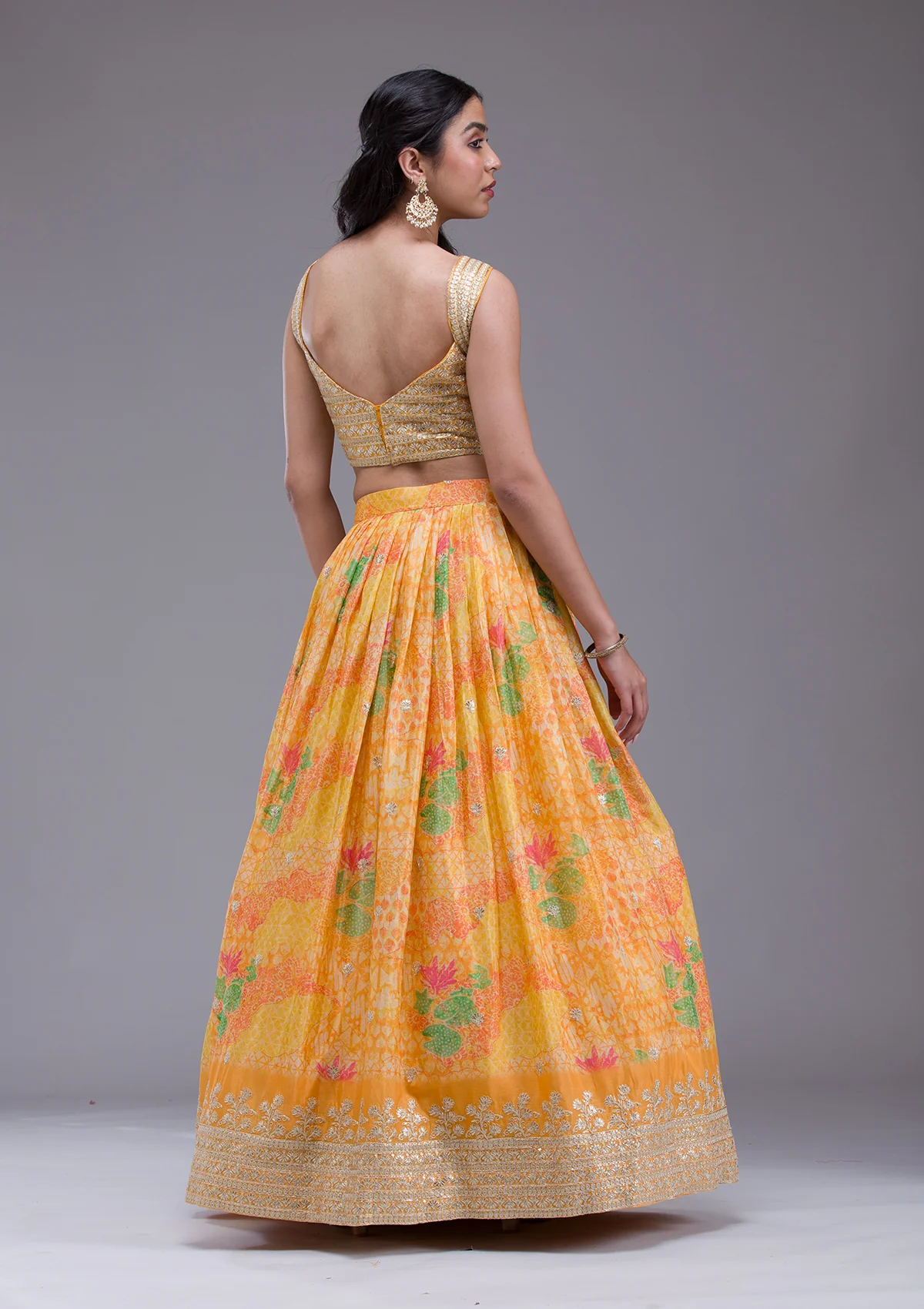 Mehendi Sequins Georgette Readymade Lehenga