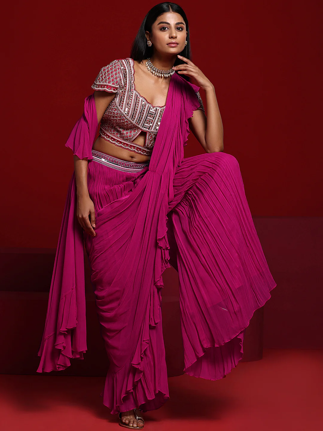 Libas Art Pink Embellished Silk Blend Palazzo Saree
