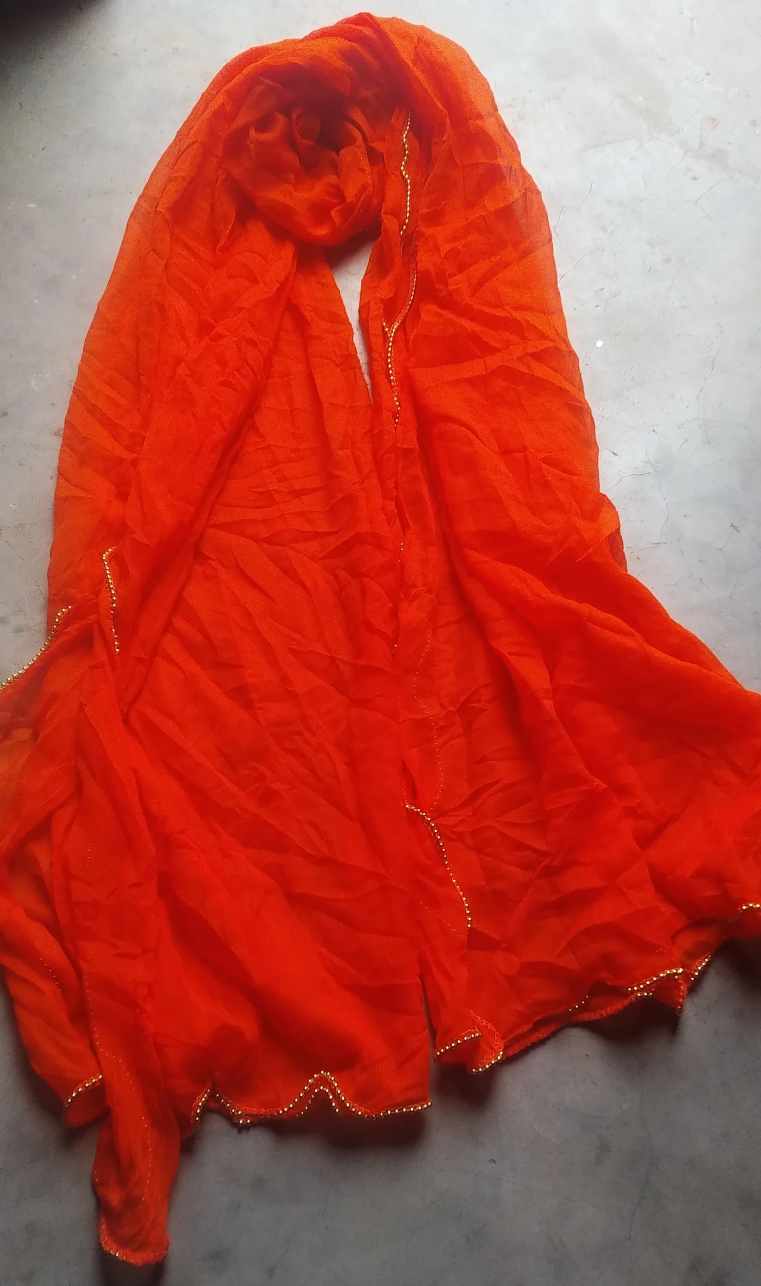The Dupatta, also called chunni, chunari and chundari, is a long shawl-like scarf traditionally worn by women in the Indian subcontinent to cover the head and shoulders. The dupatta is currently used most commonly as part of the women’s shalwar kameez outfit, and worn over the kurta and the gharara.