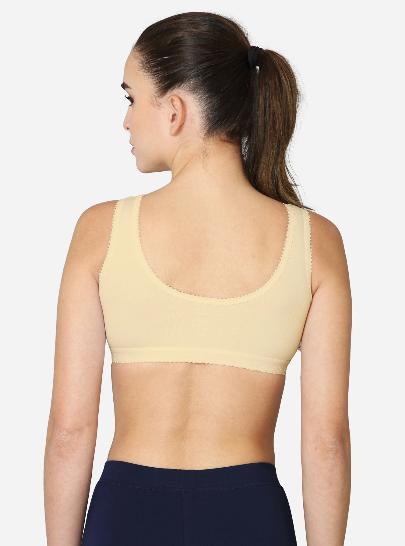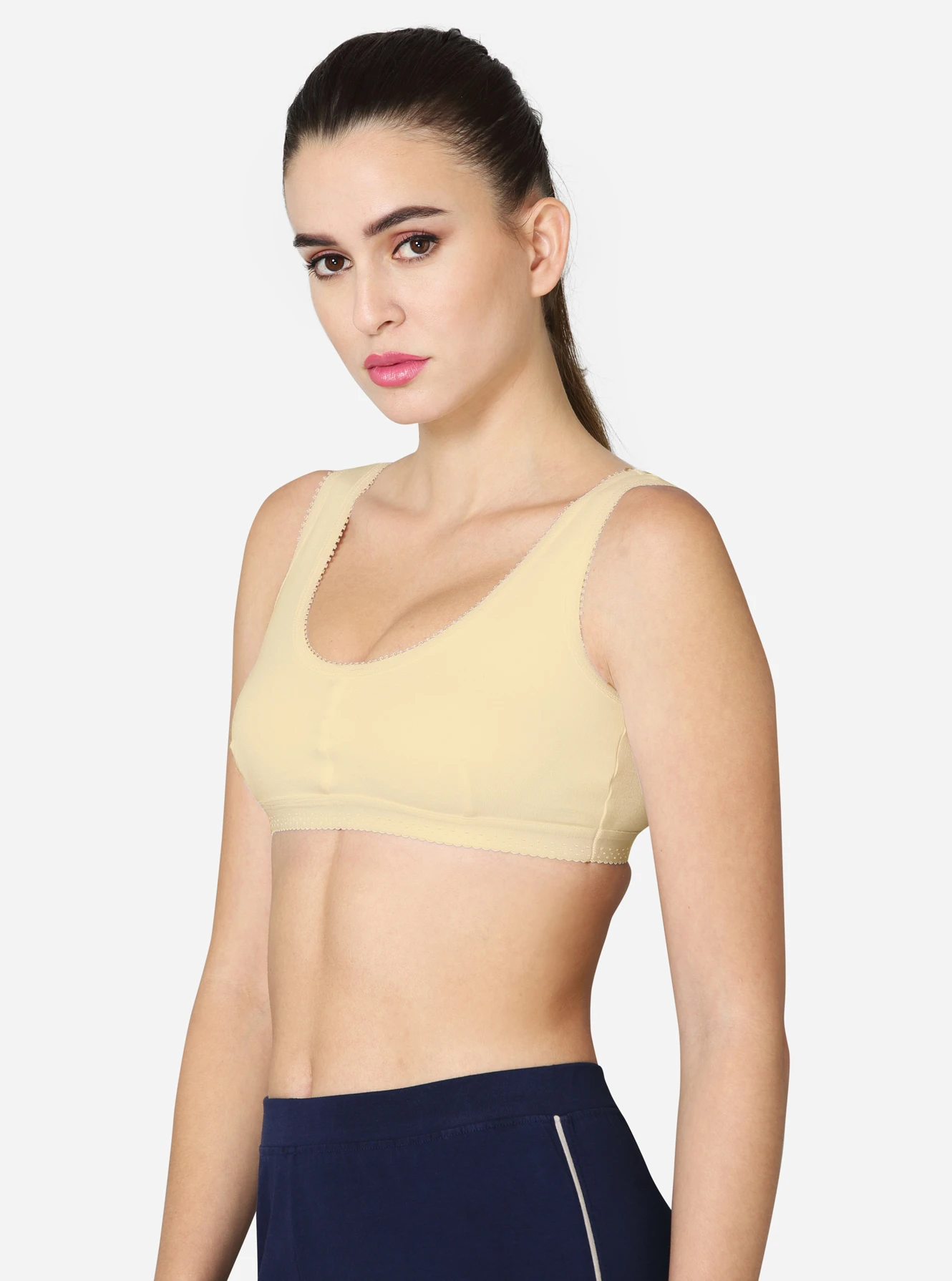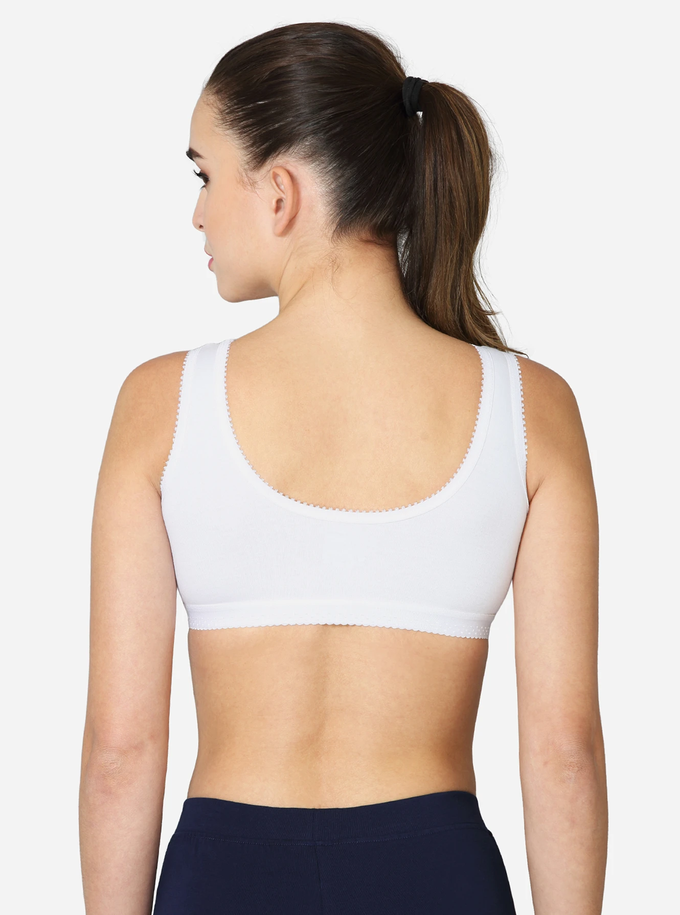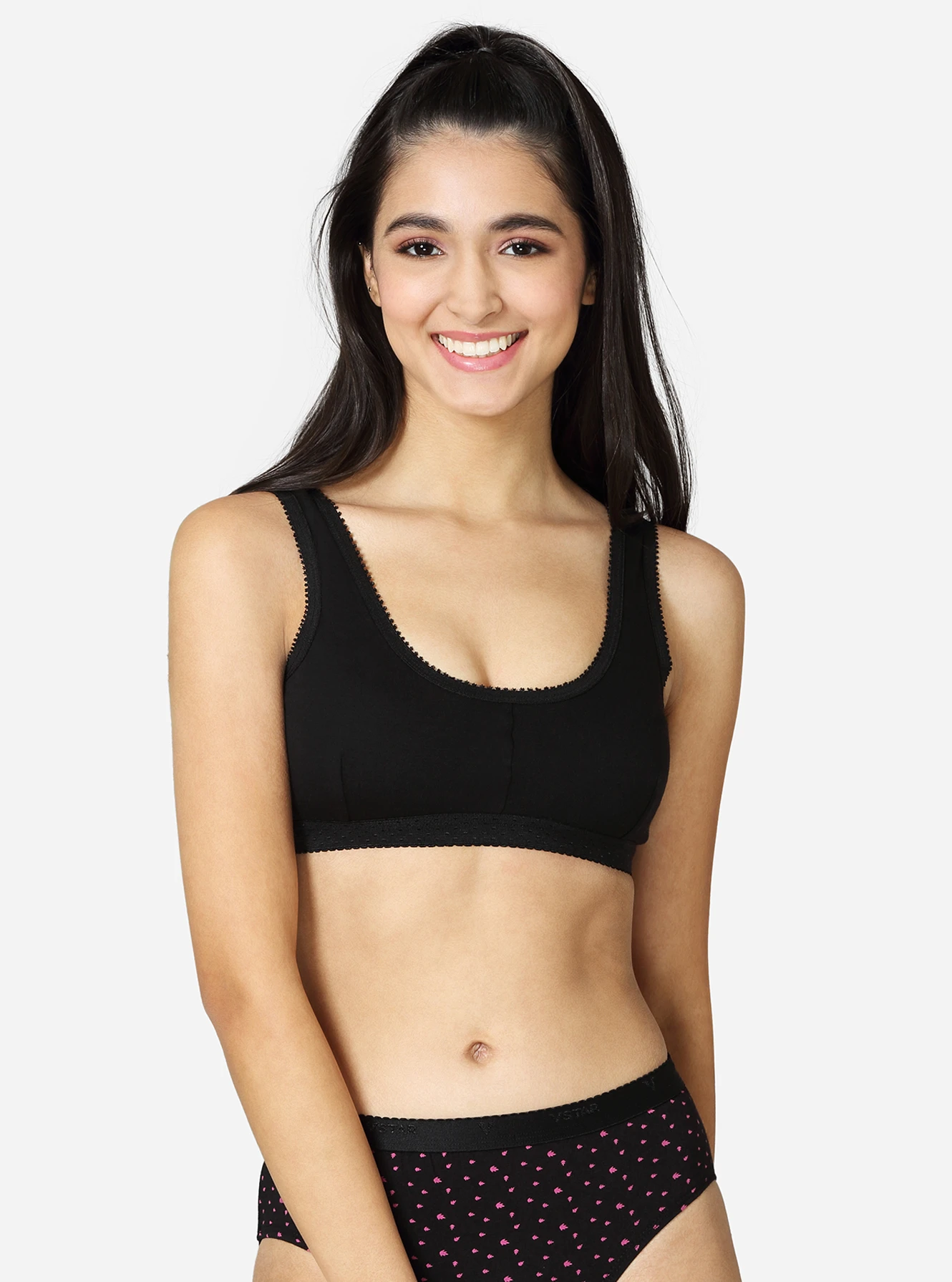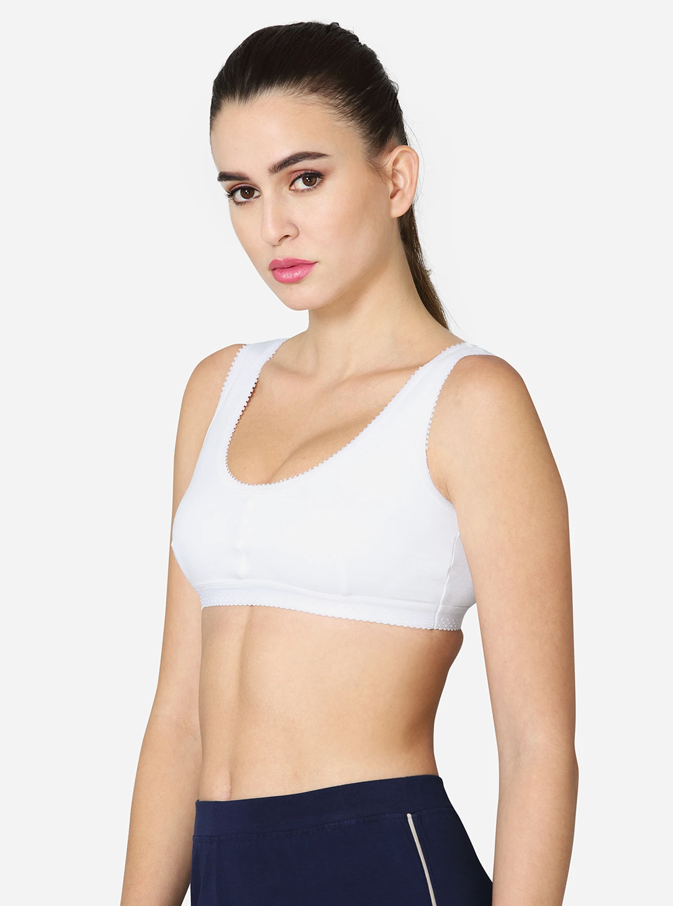 Made of 100% superior, soft combed cotton, providing excellent comfort. The double-layered, darted front panel provides maximum support. Seamed, non-padded with high coverage on the centre front. Soft, smooth, wide camisole-style strap.p No hooks or eyes attached for easy slip-on. Available in white skin & black colors