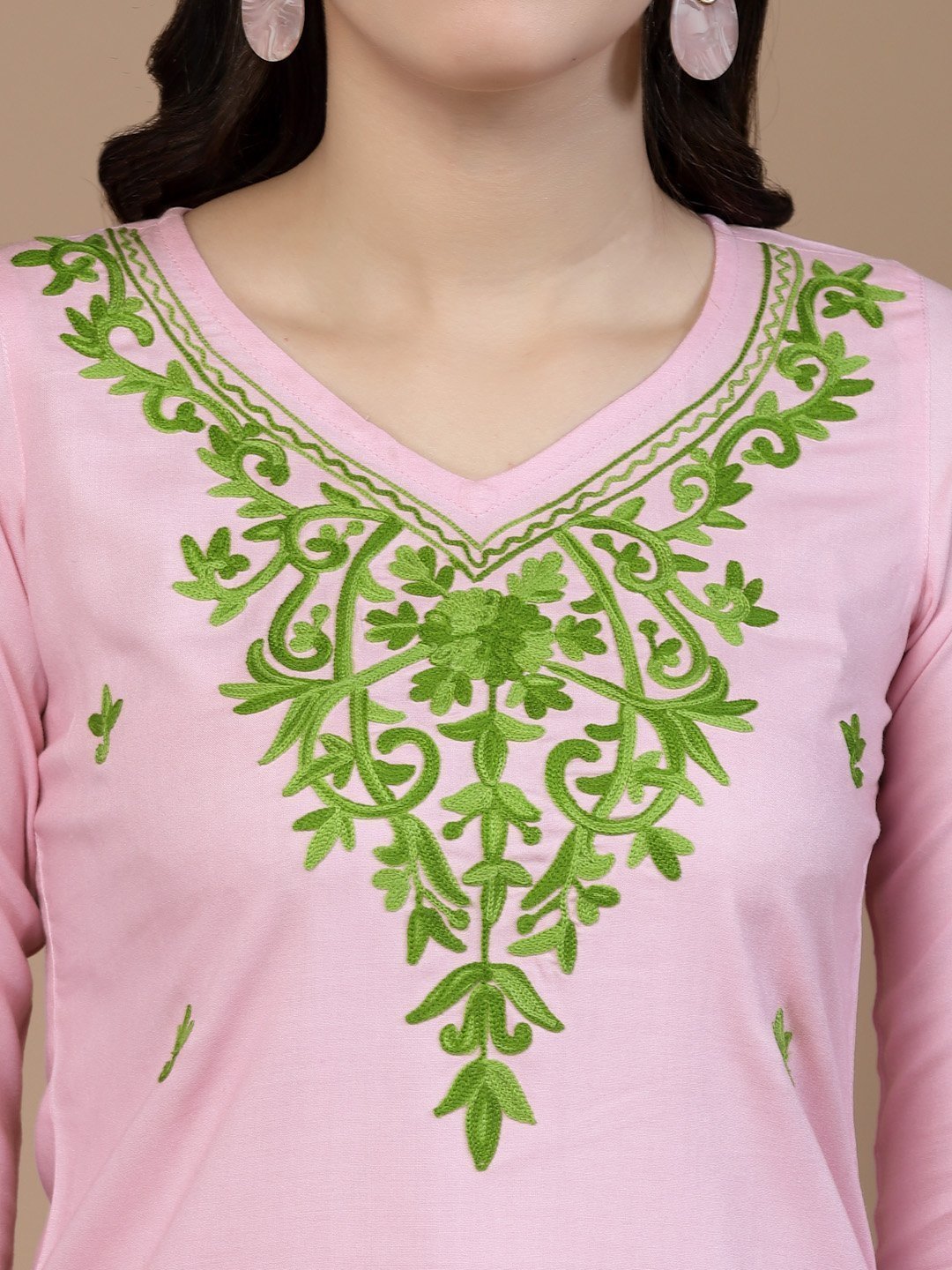 • Embroidery: Kashmiri Aari Using Green Color Cotton Thread