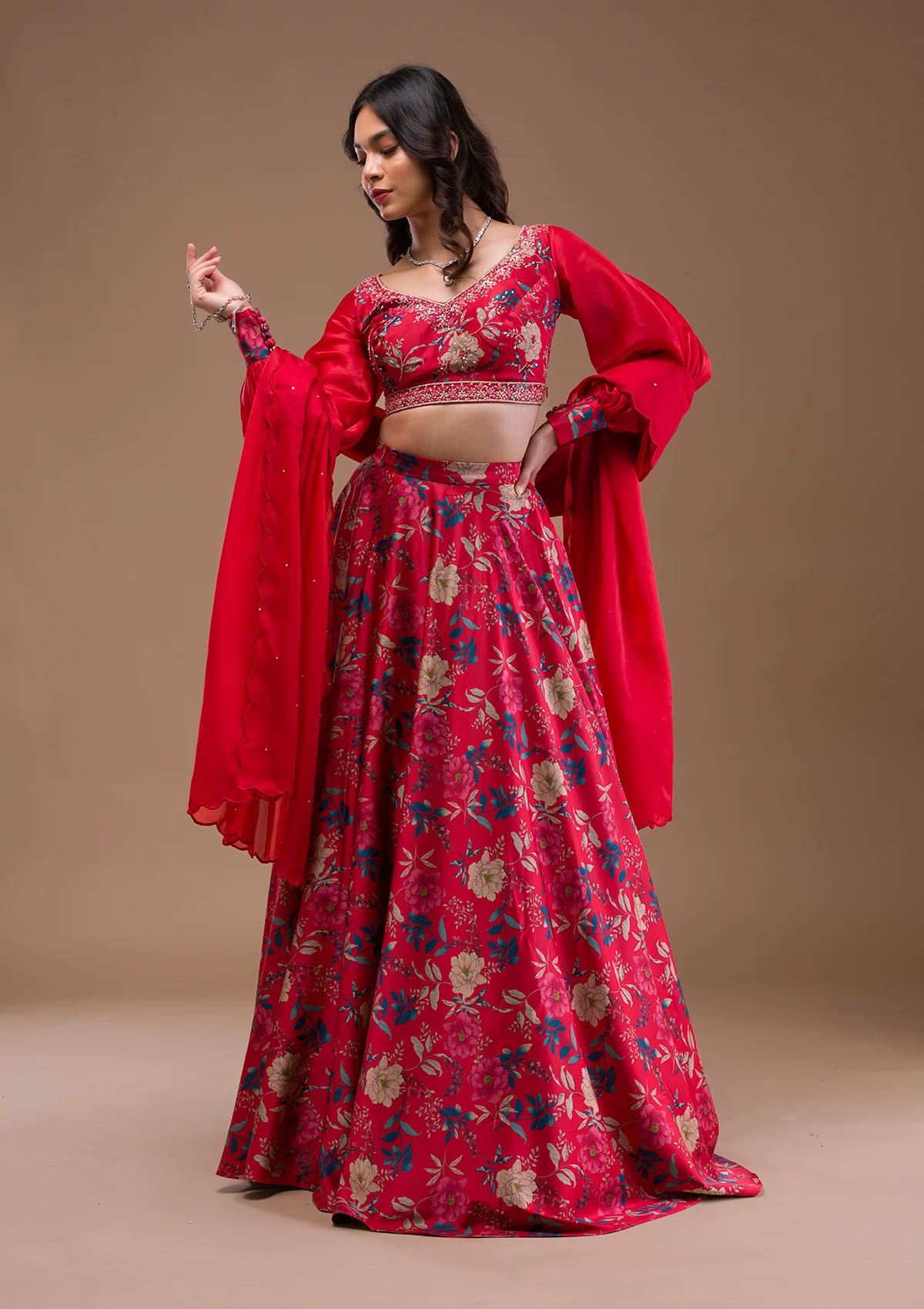 Dive into the world of vibrant celebration with Satin Red Lehenga, where every twirl is a tale of tradition woven with modern flair. Adorned with eye-catching cutdana embroidery, this lehenga shines in vivid hues of red and blue, promising to turn heads at any festive gathering. It’s not just a dress; it’s your passport to feeling fabulous, wrapped in the luxurious touch of satin that dances as joyfully as you do!.