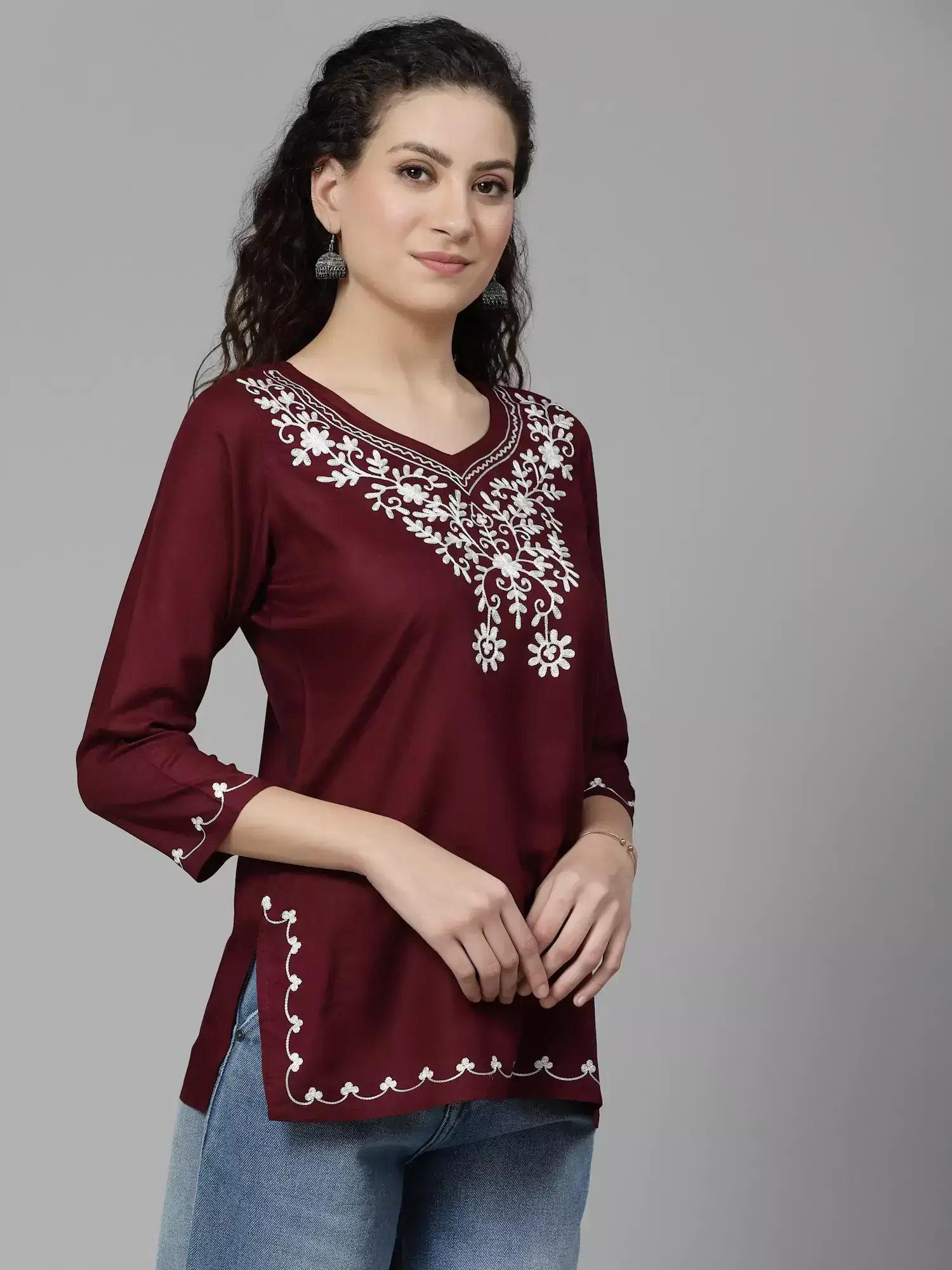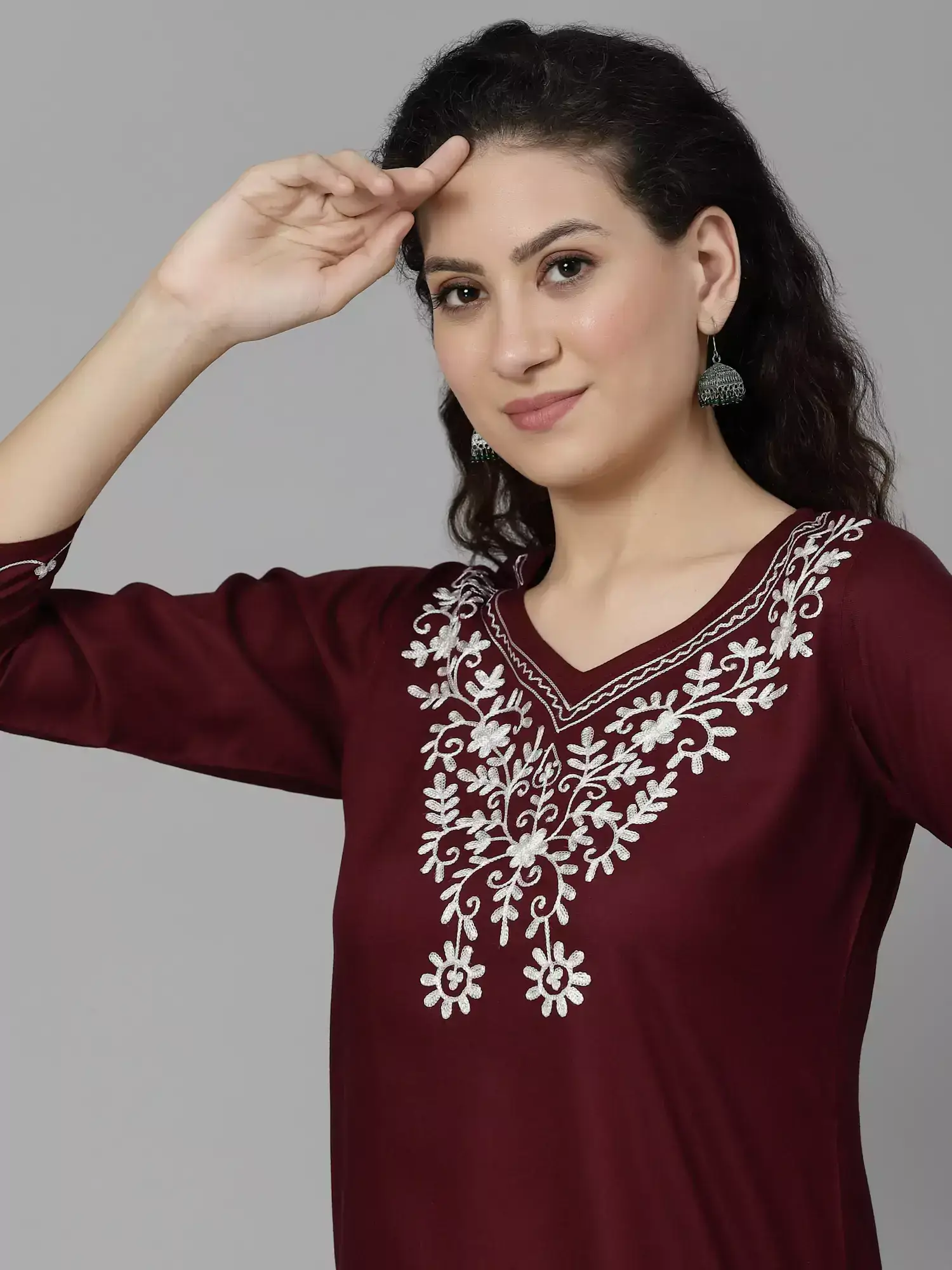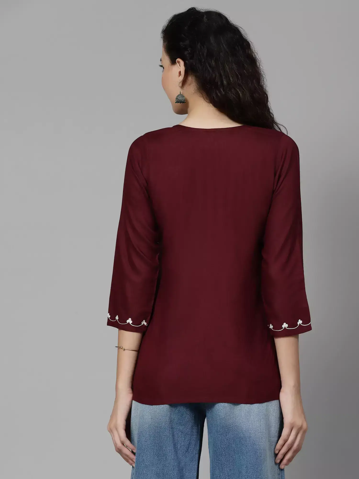 Wine Colored Resham Work Short Kurti