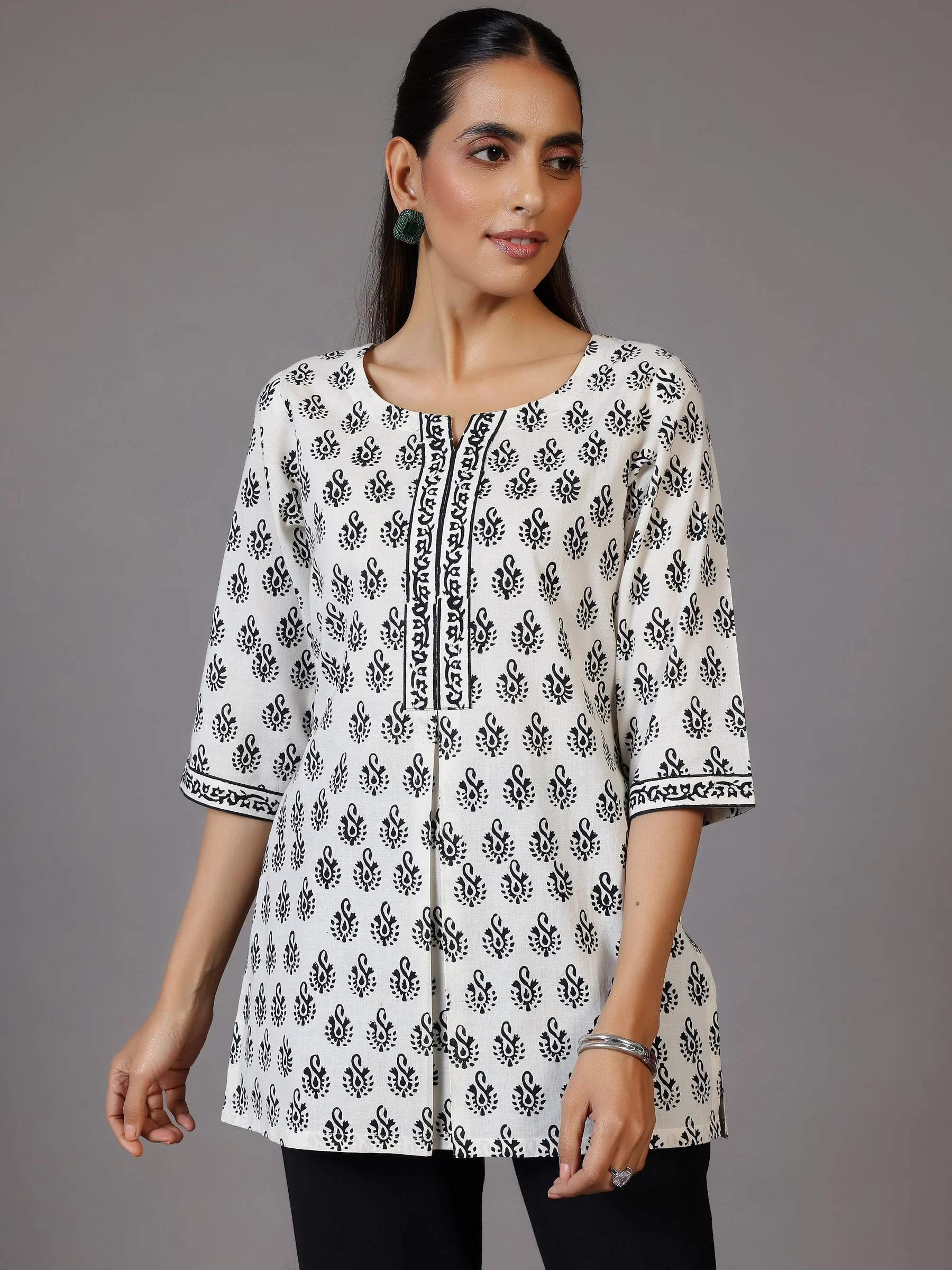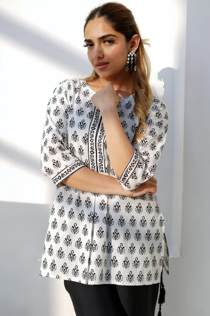 White Printed Cotton Straight Kurti